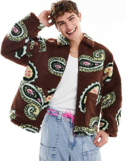 Chaqueta marrón con estampado de cachemir de sherpa de Obey
