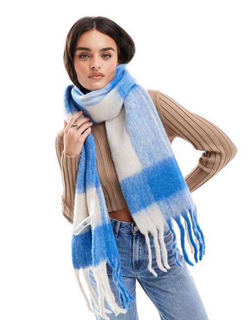 Bufanda a cuadros azules gruesa con flecos de Object