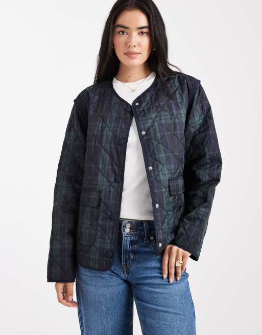 Chaqueta guateada a cuadros azul marino y verde oscuro de Object