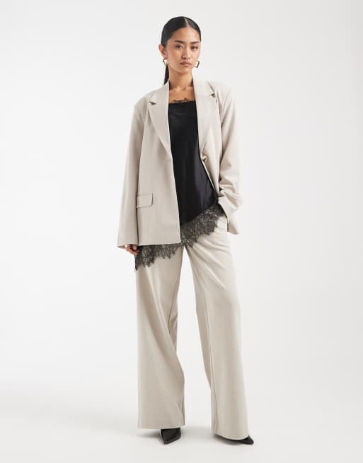 Conjunto de sastre color humus de pantalones y americana extragrande de Object