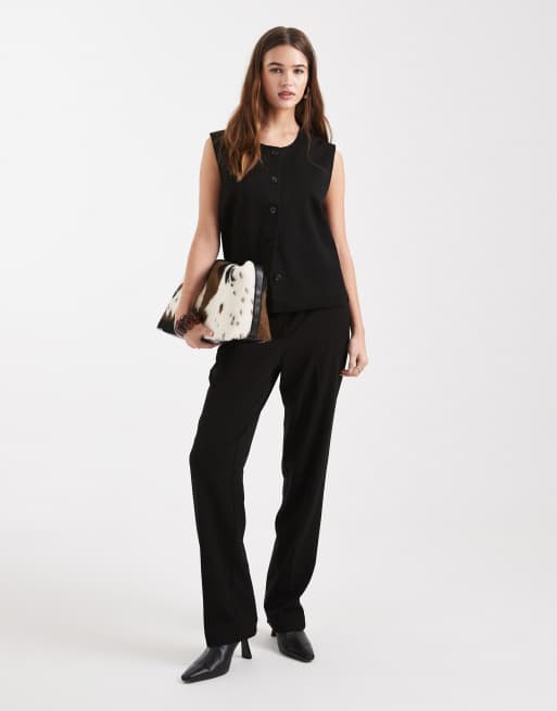Conjunto negro de chaleco con cuello redondo y pantalones de pernera recta de Object