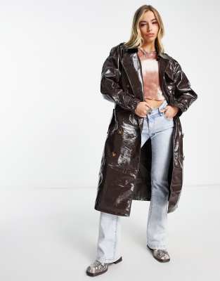 Gabardina marrón de vinilo de Object