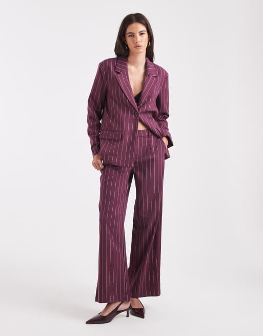 Pantalones de sastre burdeos de pernera ancha con raya diplomática de Object (parte de un conjunto)