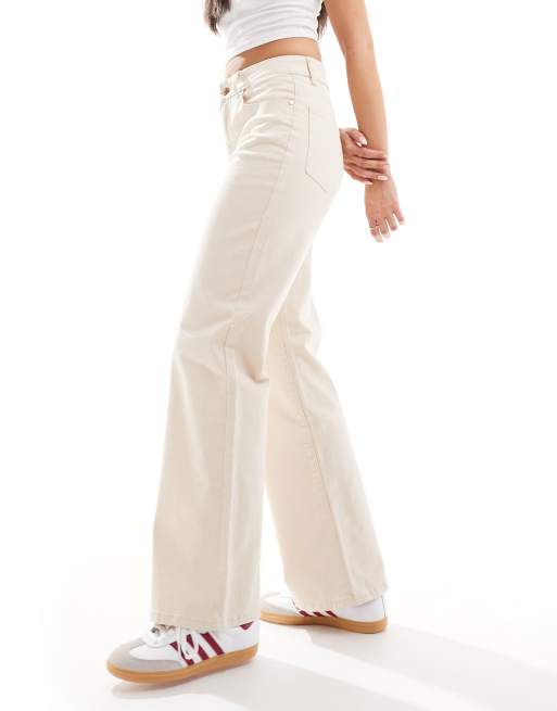 Vaqueros color crema de pernera ancha y talle medio de sarga de Object