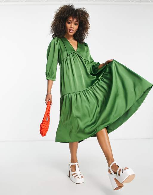 Vestido midi verde amplio de satén Adalina de Object