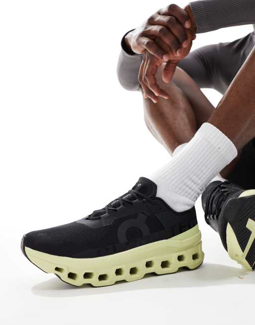 Zapatillas de deporte negras y verde lima para correr Cloudmonster de ON