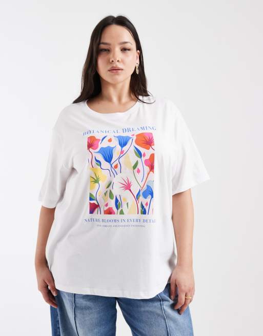 Camiseta blanca extragrande con estampado gráfico botánico de ONLY Curve
