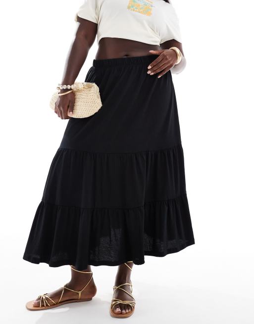 Falda larga negra escalonada de ONLY Curve