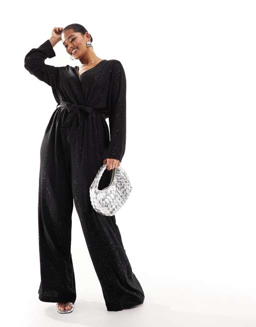 Mono largo negro con purpurina y lazada en la cintura de Only Curve