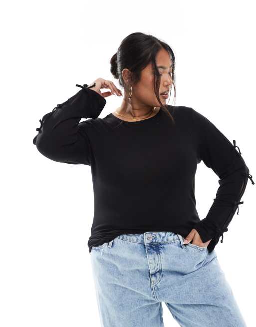 Top negro de manga larga con detalle de lazos de ONLY Curve