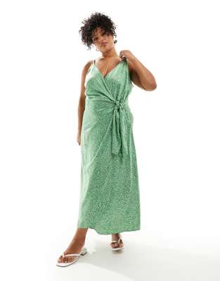 Vestido verde cruzado de tirantes con estampado de leopardo pequeño de ONLY Curve