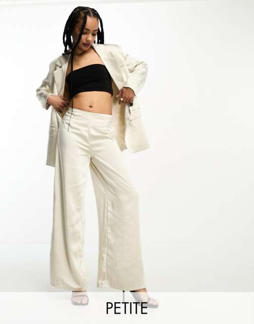 Pantalones color champán estilo palazzo de talle alto de satén de Only Petite (parte de un conjunto)