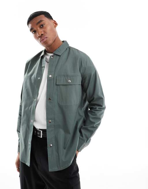 Camisa color cerceta de manga larga con bolsillo delantero de ONLY & SONS