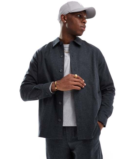 Camisa gris carbón de manga larga de franela de ONLY & SONS (parte de un conjunto)