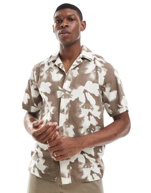 Camisa marrón con estampado floral difuminado y cuello de solapas de ONLY & SONS