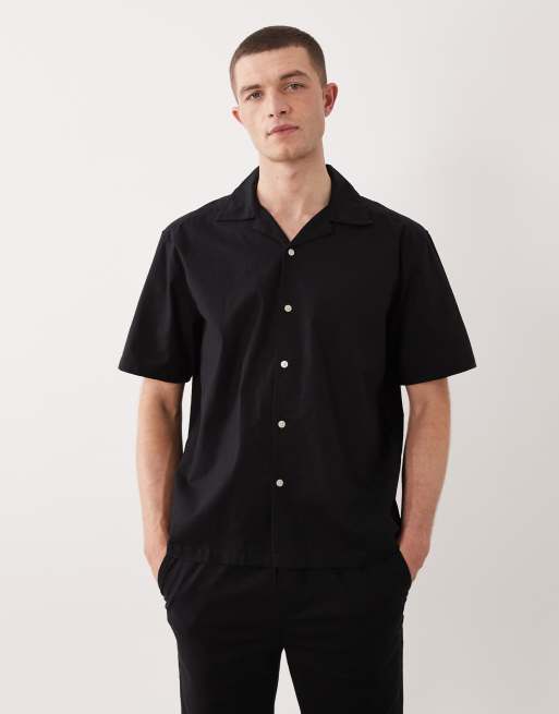 Camisa negra con cuello de solapas de tejido rico en algodón de ONLY & SONS (parte de un conjunto)