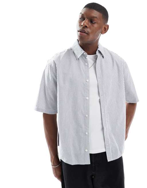 Camisa Oxford blanca a rayas azules de corte cuadrado de ONLY & SONS