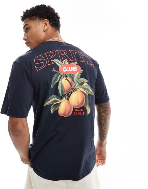 Camiseta azul marino extragrande con estampado "Spritz" en la espalda de ONLY & SONS