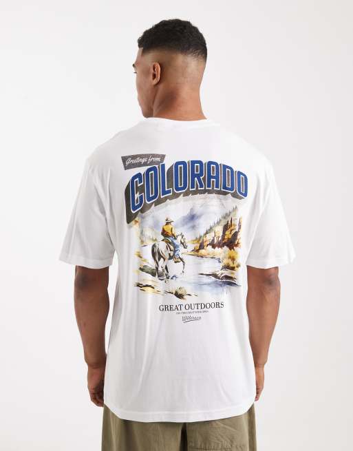 Camiseta blanca extragrande con estampado trasero "Colorado" de ONLY & SONS