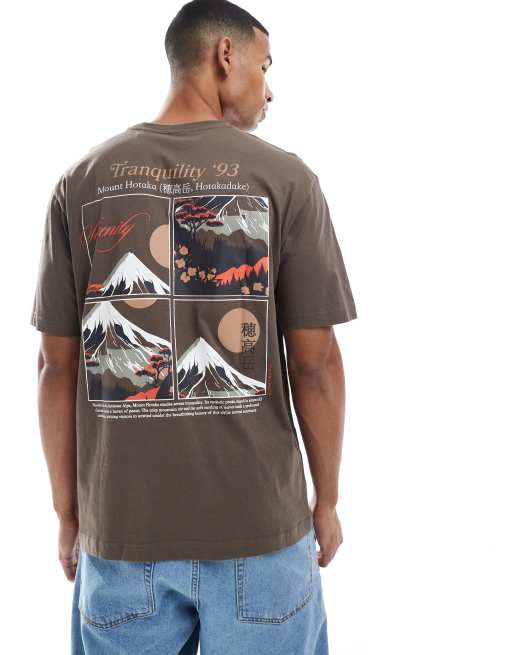 Camiseta marrón extragrande con estampado de montañas en la espalda de ONLY & SONS