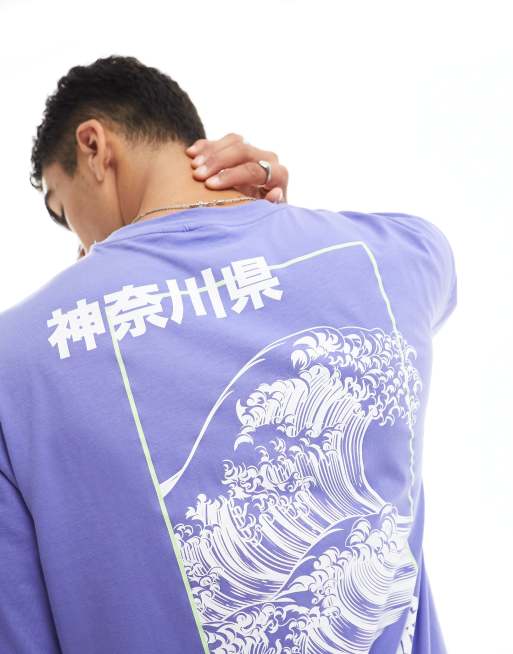 Camiseta morada extragrande con estampado de ola en la espalda de Only & Sons