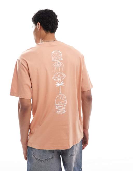 Camiseta naranja lavado extragrande con estampado "Kasbah" de ONLY & SONS