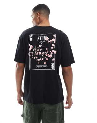 Camiseta negra extragrande con estampado "Kyoto" en la espalda de ONLY & SONS