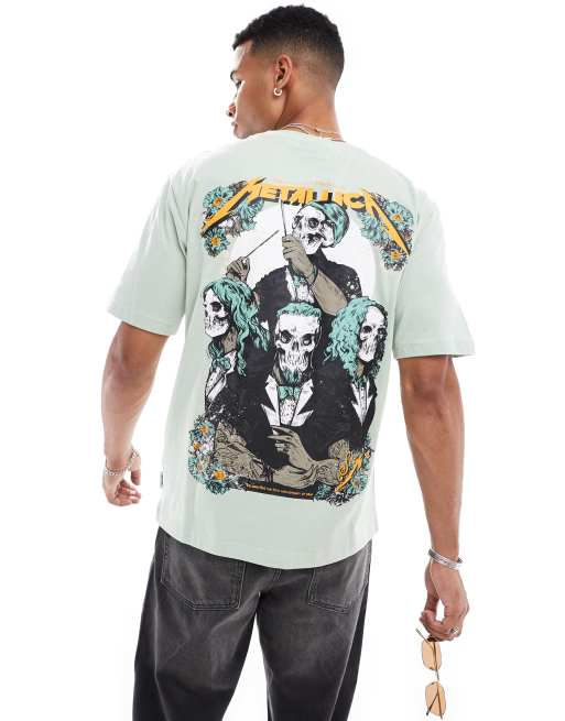 Camiseta verde salvia extragrande con estampado de Metallica en la espalda de ONLY & SONS