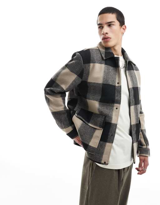 Chaqueta beis a cuadros acolchada de estilo worker de Only & Sons