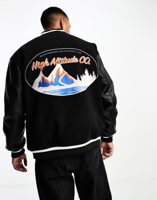 Chaqueta bomber negra extragrande con bordado de montañas de Only & Sons