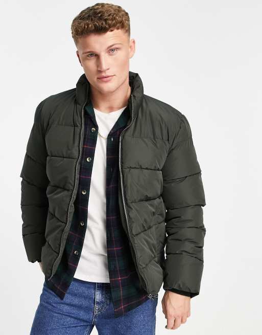 Chaqueta de plumas caqui con cuello alzado de Only & Sons