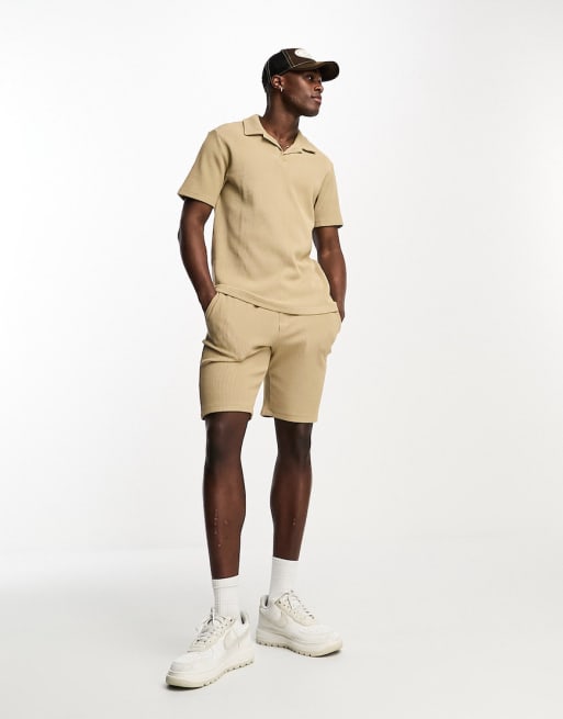 Conjunto beis de polo y pantalones cortos de canalé de Only & Sons