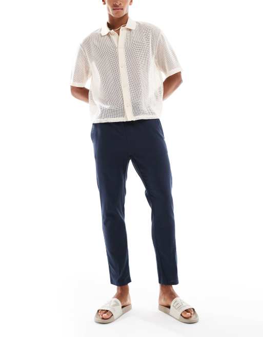 Pantalones capri azul marino de mezcla de lino de ONLY & SONS