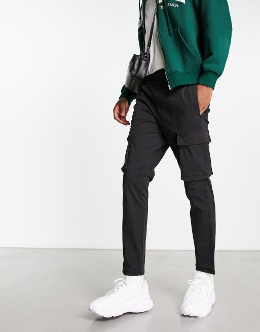Pantalones cargo negros de corte tapered con cinturilla elástica de Only & Sons