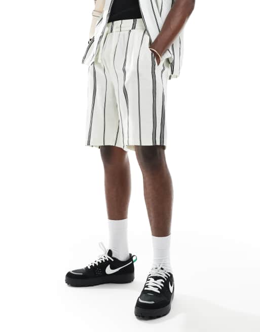 Pantalones cortos a rayas monocromáticas de tejido efecto lino de ONLY & SONS (parte de un conjunto)