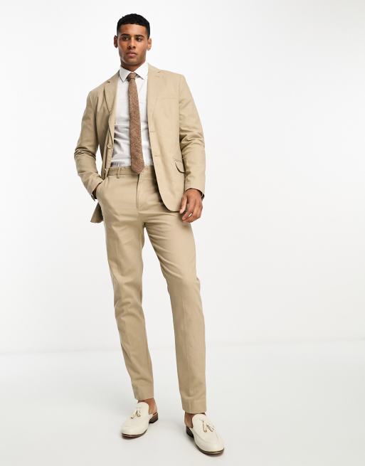 Pantalones de traje beis de corte slim de mezcla de lino de Only & Sons