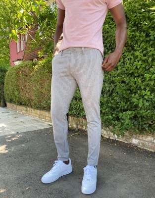 Pantalones de vestir grises elásticos con rayas finas de Only & Sons