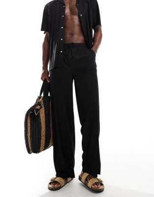 Pantalones negros sueltos plisados sin cierres de ONLY & SONS (parte de un conjunto)