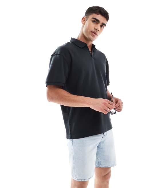 Polo negro extragrande con cuello abierto de ONLY & SONS