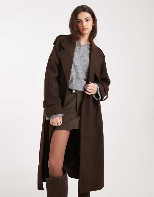 Abrigo de vestir marrón chocolate con cinturón de ONLY