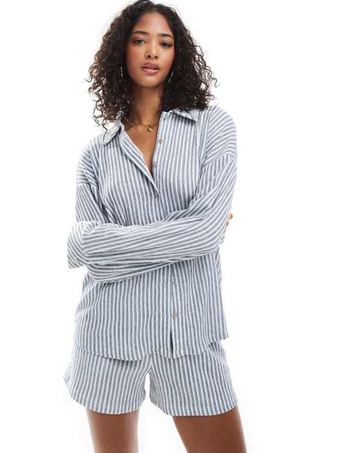 Camisa a rayas azules extragrande de tejido texturizado de ONLY (parte de un conjunto)