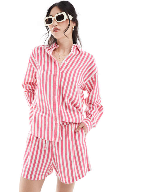 Camisa a rayas blancas y rosas de lino de ONLY (parte de un conjunto)