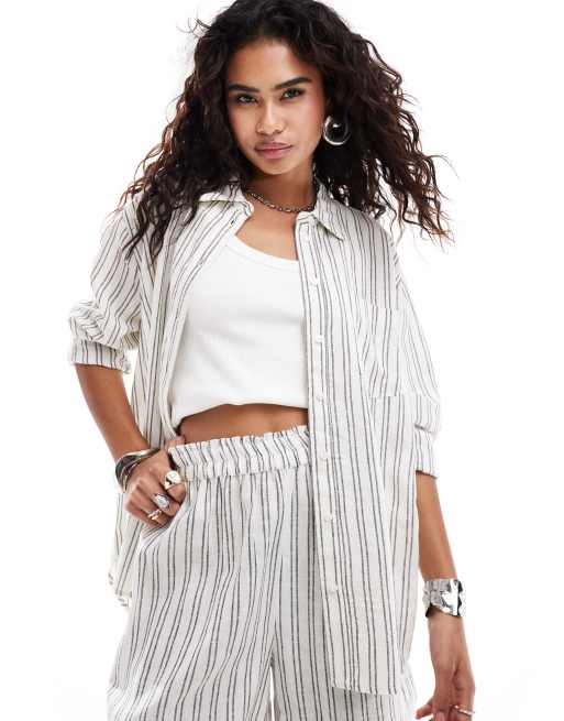Camisa blanca a rayas grises extragrande de mezcla de lino de ONLY (parte de un conjunto)