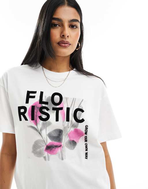 Camiseta blanca extragrande con estampado gráfico floral de ONLY