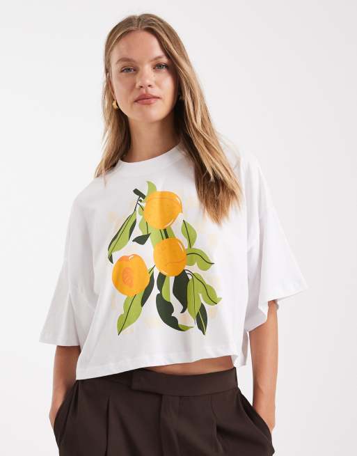 Camiseta corta blanca con gráfico de naranjas de ONLY