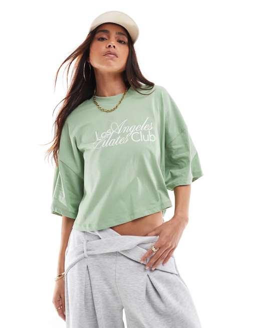 Camiseta corta verde claro con estampado "LA Pilates Club" de ONLY