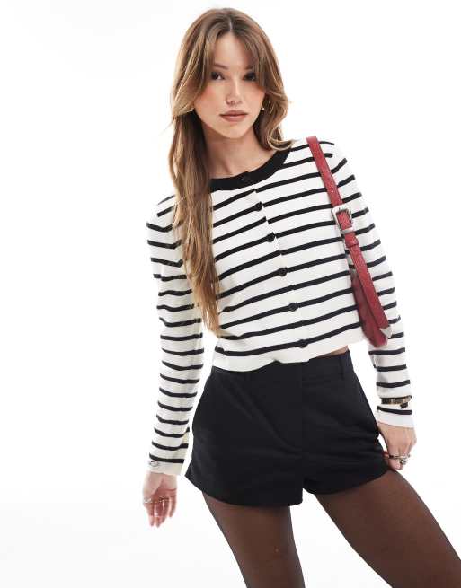 Cárdigan corto blanco a rayas negras de punto de ONLY