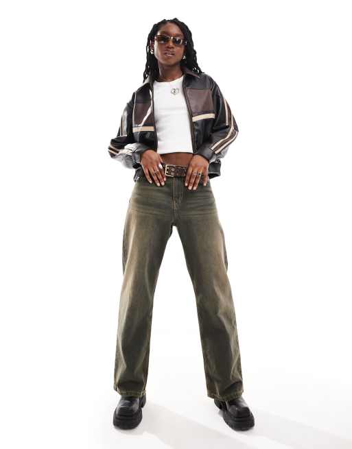 Chaqueta bomber marrón de estilo motocross retro de cuero sintético de ONLY