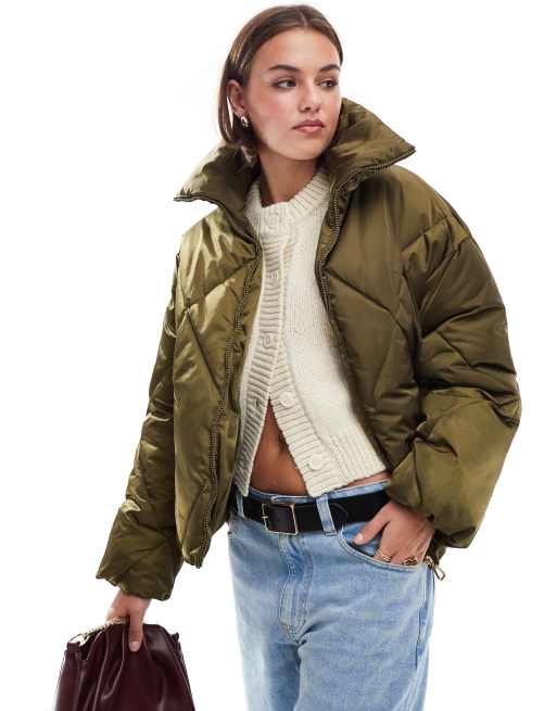Chaqueta verde oscuro guateada de satén de ONLY