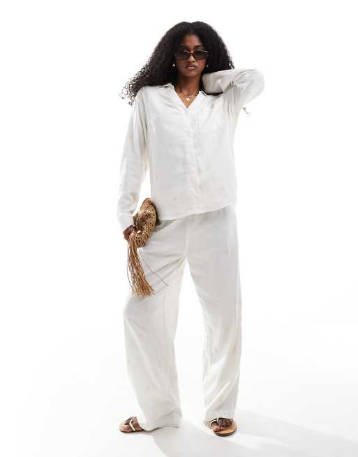 Conjunto blanco de camisa y pantalones con bordados de lino de ONLY
